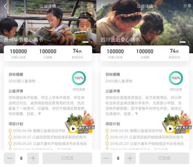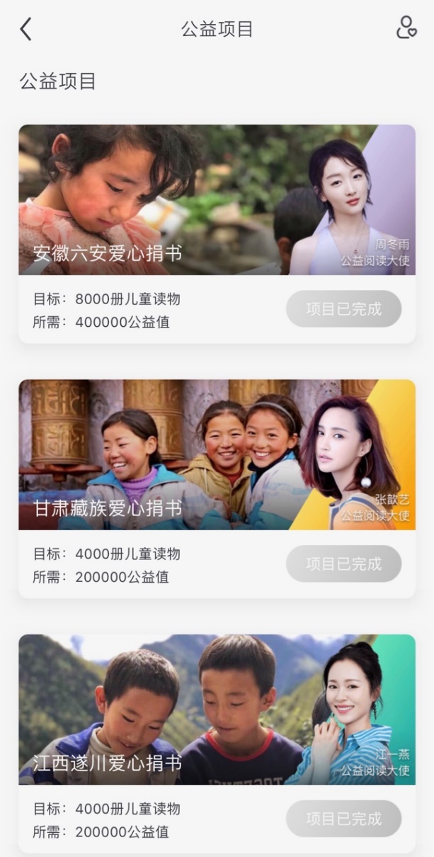 2018年4月24日,距离阿里文学联合中国福利基金会发起的“益”起读书公益阅读活动仅仅过去了17天,在书旗小说APP上进行的累计公益值捐书活动就已经全部完成。2万本儿童读物将由阿里文学公益大篷车送往安徽六安、甘肃藏族自治州、江西遂州、四川资阳、贵州毕节等地孩子们手中。