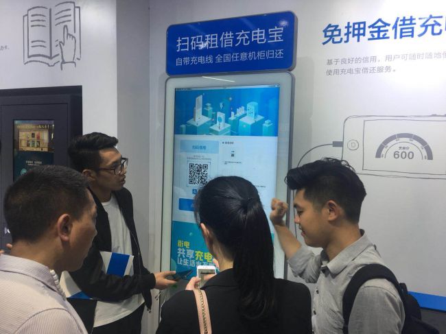 在本届数字中国建设峰会上,记者看到蚂蚁金服展台旁的街电大柜机,被蜂拥而至的“借电“用户围得水泄不通。每台二十多部的共享充电宝,很短时间内被借空,现场的街电运营负责人不得不陆续的追加备用共享充电宝数量。