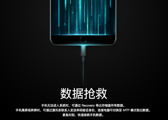 考虑手机受损导致黑屏或碎屏不能显示时,手机里的资料很难取出,让人既担心信息资料的安全,又感到很着急,Flyme 7加入了数据抢救功能。你只需要一根数据线,将受损手机和电脑连接,让你通讯录中的任一联系人发送锁屏密码到受损手机进行身份验证。手机就会自动切换成 U 盘模式,即可顺利在电脑上取出受损手机里的数据,安全又便利。