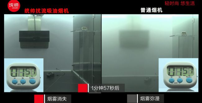 大多数中国家庭都喜欢爆炒、油炸等烹饪方式,容易产生大量油烟,如果油烟机吸速太慢,滞留的油烟会对人的健康造成诸多危害。近期,统帅发布了一则L.ONE扰流吸油烟机与普通烟机的吸速对比演示视频,视频中两个玻璃房内浓烟弥漫,统帅L.ONE扰流吸油烟机不到2分钟“极速劲吸”不留烟痕,比普通烟机领先1分钟。