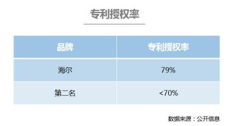 专利授权率即最终获批的专利数,也是反映企业创新实力的最终依据。在这方面,海尔专利授权率接近80%,为行业最高,而第二名将提报数量作为专利数量第一的依据,实际上授权率不超过70%。