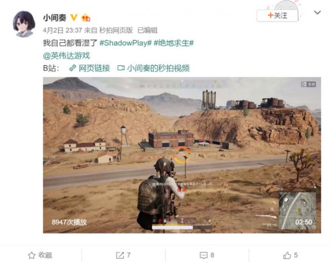 本次NVIDIA Highlights PUBG创意视频大赛已完满结束,比赛期间大量PUBG玩家分享了原创视频作品,玩家对GFE的NVIDIA Highlights/ ShadowPlay录像功能使用非常娴熟,录制的趣怪视频质量非常高。所有获奖者将收到由@英伟达游戏官方发出的获奖通知,玩家将相应个人姓名、地址和电话等信息进行回复,待英伟达官方确认个人信息后即会快递邮寄形式对应发放奖品。