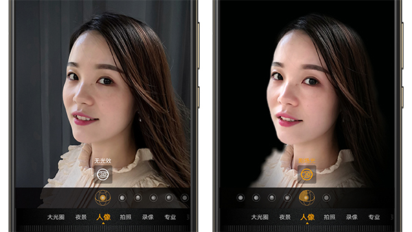 侧光是华为P20 Pro用AI模拟从左侧或者右侧来的光线,是面部出现明暗对比。