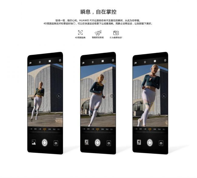 看过上述雷人的防抖抓拍装置,不但起不到太大效果,反而增加累赘感。其实,自从华为P20系列手机出现之后,手机抓拍问题就被解决了,凭借依托AI芯片实现的4D预测追焦功能,华为P20系列手机能够预测出移动物体下一秒出现的位置,提前准备,从而在最短的时间内完成对焦,同时拥有AIS人工智能防抖功能,让你在快速抓拍时不会因为手部抖动而糊片。