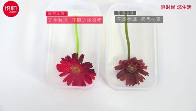 随着生活质量的提高,消费者对食材的存储温度需求更加多样,变温冰箱应势而生。但普通冰箱变温区间小、设定温度后温度变化迟缓、存储过程温度波动大等痛点,让追求体验感的年轻人望而却步。5月3日,统帅用一支鲜花解决了这一行业痼疾,在这则72小时冷冻鲜花的实验视频中,鲜花在普通冰箱里被冻得枯萎,而统帅冰箱超宽变温技术下的精准控温做到了冻花不败。