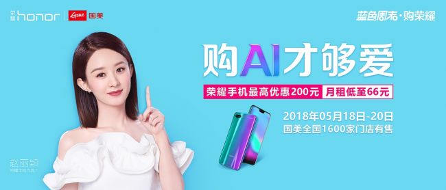5月20日,荣耀联合国美共同举行“蓝色周末·购荣耀”520荣耀国美超级品牌日。活动期间,年度潮美旗舰荣耀10开放购买,荣耀V10直降200元助你用AI表白。除此之外,荣耀9青春版将会开启5.6折超值优惠,荣耀畅玩7X、荣耀畅玩7C、荣耀畅玩7A等多款手机产品也将全部返场。