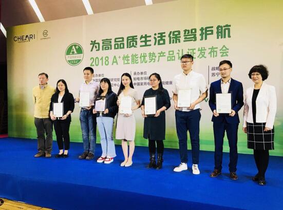 5月22日,由中国家用电器研究院、北京中轻联认证中心主办的2018A +性能优势产品(全产线)认证新闻发布会在北京召开。会上发布了洗衣机、电冰箱、洗碗机、空气净化器、净水机、加湿器、消毒柜、废弃食物处理器等8个品类新一批通过A+认证的产品,有7个品牌共计17个型号的家电通过了认证。其中冰箱品类,卡萨帝F+自由嵌入式冰箱菁巧系列和自由嵌入法式冰箱顺利通过A +认证,是该品类中唯一获得2项A+认证的高端冰箱品牌。