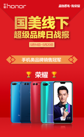 “蓝色周末·购荣耀”520荣耀国美超级品牌日落下帷幕,荣耀官方公布了这次活动战报:荣耀成为国美销量冠军品牌;荣耀V10、荣耀10和荣耀畅玩7X斩获国美热销单品排行榜前三名;北京、上海、深圳三座城市,国美线下门店荣耀手机卖的最多。