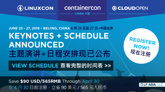 6月25日至27日将在北京召开的LinuxCon + ContainerCon + CloudOpen 中国(LC3)大会,新增主题演讲嘉宾和活动以及执行企业领导力会议的日程安排。新增的演讲嘉宾包括来自华为、埃森哲、阿里巴巴、百度、中国移动、星座研究、滴滴出行、IBM、英特尔、宏利、微软、OFO、SUSE、腾讯和Xturing生物技术等公司的领导力量。这是LC3论坛第二次在中国举行。去年的首届盛会吸引了超过2000位与会者,2018年的参会人数预计将超过3000人。