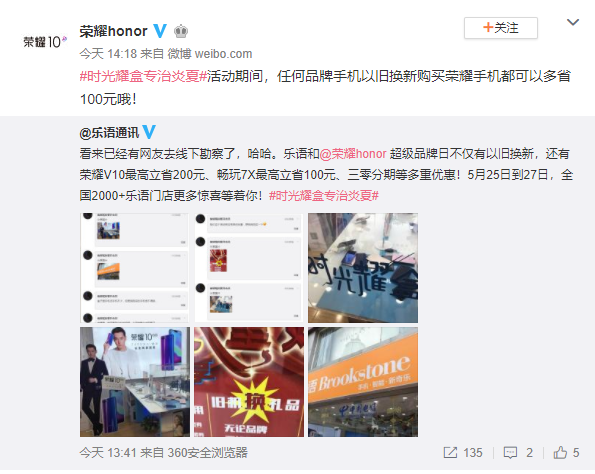 5月23日,荣耀官方微博公布了“购荣耀,乐一夏”荣耀乐语超级品牌日全部优惠信息。除了之前已经曝光的“时光耀盒、以旧换新”和“荣耀V10最高优惠200元”之外,更有荣耀10开放购买、“三零分期”和爆款手机直降的给力优惠。