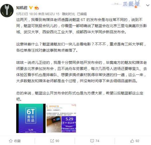 微博上也有大量网友针对这一次的魅蓝529发布会进行猜测,既然在电影院里举办,那么难道是让魅友们一起去看电影吗?毕竟还有三所大学啊,而且还是巡回发布会,这就有些意思了,难道是为了照顾到全国魅友,不让大家舟车劳顿的奔波而特意在全国各地都举办发布会,把手机送到魅友和媒体老师的眼前去,这样的服务不得不说是十分贴心啊。