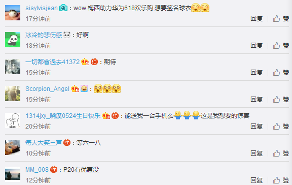 从网友回复消息可看出,大家对于华为618欢乐Goooal活动是相当关注,自从@华为终端官方微博发布“梅西带你#眼界打开#”海报后,迅速在网络中扩散更成为持续至今的热议话题。