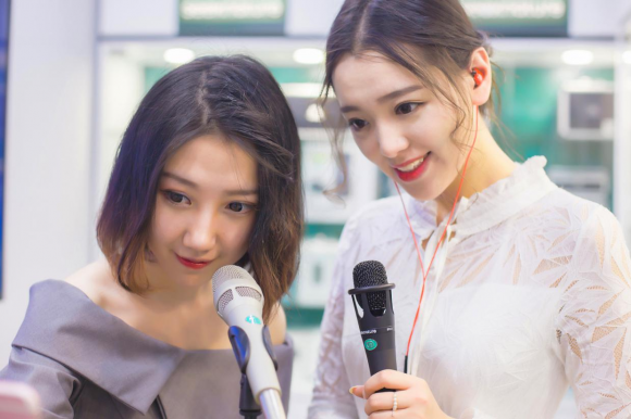 这次沈阳体验店的正式开业,森然特邀了两位美女主播前来体验直播。两位主播在现场体验了森然直播声卡设备带来的“掌声”、“哄笑”等好玩的控场特效和音效,表示直播效果明显增加了趣味性。此外,她们还用森然直播麦克风和专业级声卡设备播吧3进行了直播试唱,声音效果获得了粉丝一致好评。多款产品,让两位主播在森然体验店玩的“不亦乐乎”。