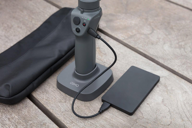 Osmo Mobile 2 采用高强度复合材质,握持手感不错;标配 2600mAh 的内置电池,据官方数据显示,在调平状态下续航 15 小时,出去的短途旅行还可以给手机当成充电宝。