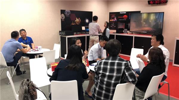展台右侧的演示机为采购伙伴提供更为直观的实操体验,让他们感受迪兰显卡强悍的性能与可靠的稳定性。