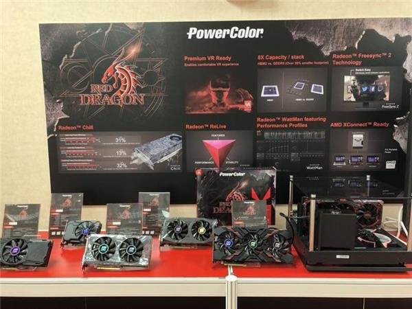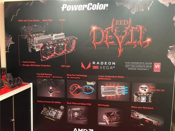 展场海报详细介绍了迪兰DEVILRXVEGA648G显卡极致强悍的性能和相关的散热做工等优点,引起了参观者很大的兴趣。