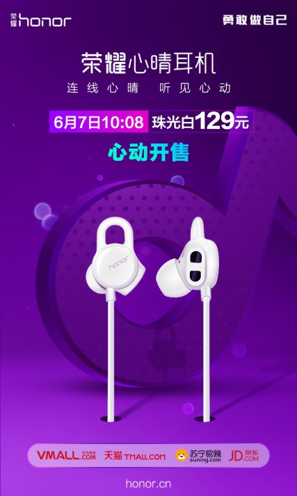 荣耀心晴耳机不仅拥有天籁般的音质和舒适的佩戴感,还具备了旗舰级耳机产品的实时心率检测功能,更重要的是还能够通过心率判断出你当下的“心晴”,给出不同的释放压力的方法。这样黑科技满满的“读心”耳机,千万别错过。6月7日10:08,售价129元的荣耀心晴耳机正式开售,首销平台包括华为VMALL商城、京东、天猫、苏宁四大平台,还不快趁机入手,手快有手慢无!