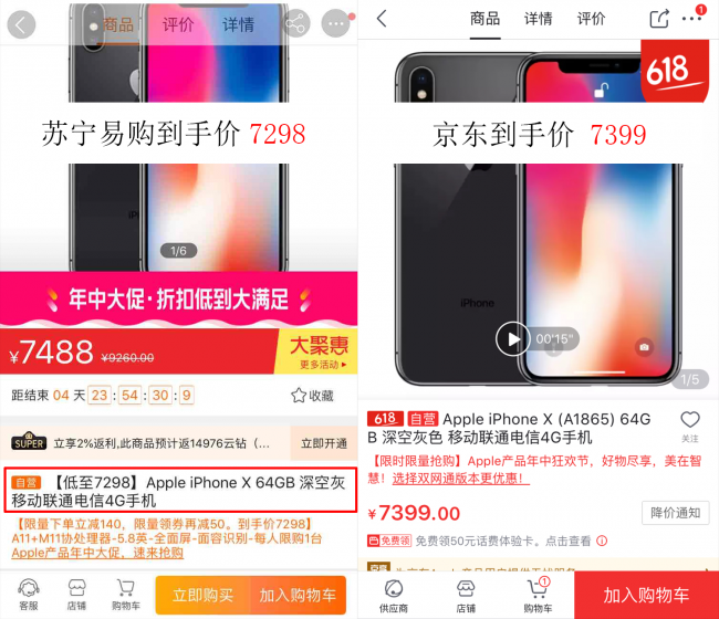 从记者随机查看的iPhone手机的价格情况来看,今年618年中大促价格战,苏宁易购更胜一筹,提醒近期有购机需求的朋友,剁手要选对平台,省钱才是硬道理。