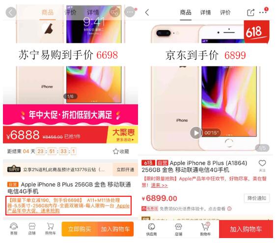 在iPhone8Plus的256G版本产品上,苏宁易购的价格力度完胜京东,差价超过了200元。