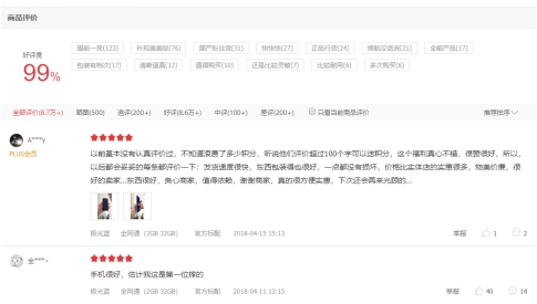 不仅仅外国友人喜欢荣耀畅玩7A,咱们国人对它也是交口称赞。在京东8.7万的评价中,99%的用户给荣耀畅玩7A好评。「续航没话说」、「全能产品」,「值得购买」,这些都从侧面体现了荣耀畅玩7A的产品力,能够做的京东好评率99%的手机现在也是少之又少。