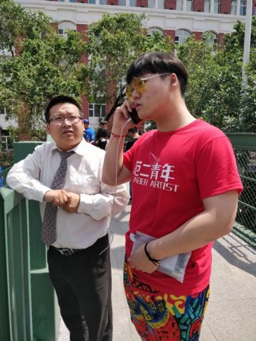 当时恰逢第一科语文考试结束,哈九中考点的考生们纷纷走出考场,首汽约车驾驶员韩洋正在考点外的过街天桥上待命机动,他看到一名戴着护目镜、穿着个性的考生在天桥上四处张望,似乎有些迷茫不知该往哪儿去。