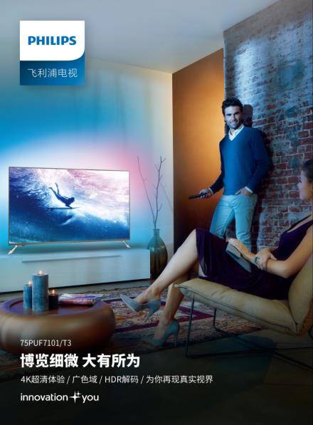 看球最爽的大屏电视还可以选择飞利浦75PUF7101/T3电视, 4K分辨率+HDR技术,85%广色域,画质清晰,带来绝佳视觉体验。采用现代工艺美学的精密设计,打造浑然一体机身,配合流光溢彩的气氛灯效果,极具视觉冲击力,畅享精彩视界!