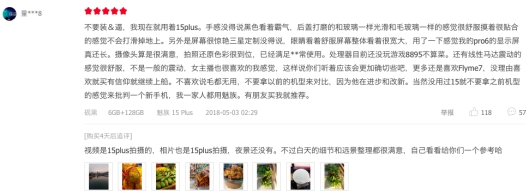 4月下旬发布的魅族15,一经亮相即广获好评,堪称性价比王者。在京东平台的评论专区,不少用户从产品的外观设计、大师级摄影效果、触感引擎概念及Flyme系统等方面分享了使用体验,可谓是好评如潮。在对产品高度认可的用户中,不乏追随魅族多年的忠实粉丝,他们潜藏多年的情怀被这款献礼品牌十五周年的梦想机彻底点燃,甚至有魅友表示,入手魅族15后要坚持用够五年,等待魅族20周年的纪念版再换新机。