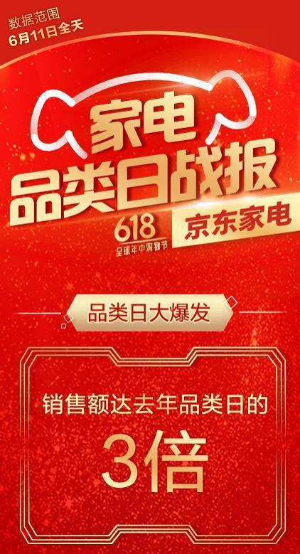 6月1日,618大促开场6分钟,京东家电销售额即破10亿;6月11 日,销售高潮波澜再起,全天销售额达到去年家电品类日的3倍还多!