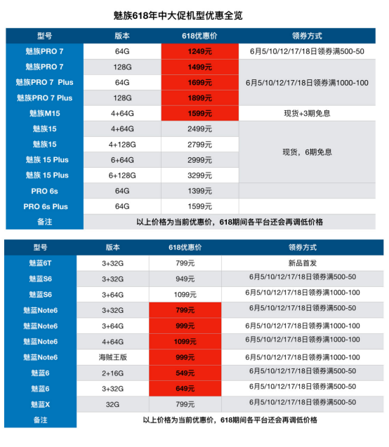 在即将到来的618年中大促中,魅族更是乘胜追击,多款机型破历史冰点价,魅族PRO 7更是放出了1249元的钜惠政策。还有被网友誉为低价高配的魅蓝也陆续放出超值优惠价,其中魅蓝Note6优惠至799元,海贼王版优惠至999元,魅蓝6更是首当其冲,放出649元的历史最低价。另外,在本次魅族618年中大促期间,各大平台还会再次调低价格,并且用户领券还有满500-50/满1000-100的优惠活动。不计成本的优惠活动,感兴趣的你,不妨趁着优惠赶紧入手啦!