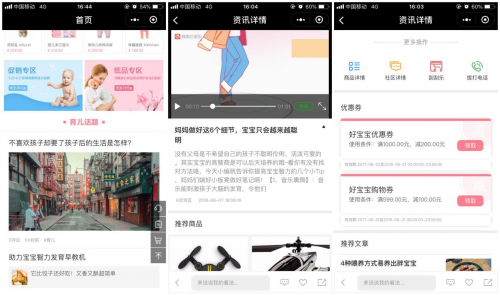 在新社交阅读场景的基础上,即速应用打破了内容板块与电商平台的界限。运营者不仅可以在内容板块中对接拼团、秒杀、会员卡、优惠券、红包等多种营销工具以及分享、跳转小程序等功能,也可以通过文章推荐、商品推荐等进行引流。例如一篇介绍夏季服装搭配技巧的内容,就可以搭配优惠券或者红包,直接引导用户购买喜欢的服装商品。这种类似淘宝头条的形式,能让运营者以高质量的内容进行导购,大幅提高用户的消费意愿。不过与淘宝、京东等传统电商平台不同的是,内容电商在小程序上更容易创造消费场景,让用户产生信任感,进而挖掘用户的潜在消费需求。