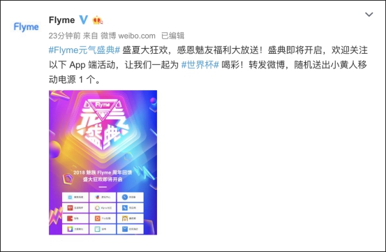 6月14日Flyme官方微博发布博文宣布开启Flyme 元气盛典活动,并透露“盛夏大狂欢,感恩魅友福利大放送”。而关于活动具体形式和细节官方并未过多透露,引得外界好奇和猜测。