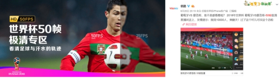 此外,优酷还在世界杯期间,不断尝试进一步革新赛事观看体验,应用超高帧率算法先是开设50帧极清赛事点播专区,昨日又在葡萄牙VS摩洛哥一战中首次开放50帧极清公测,进一步推动赛事直播变革。