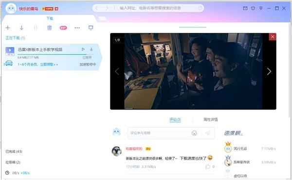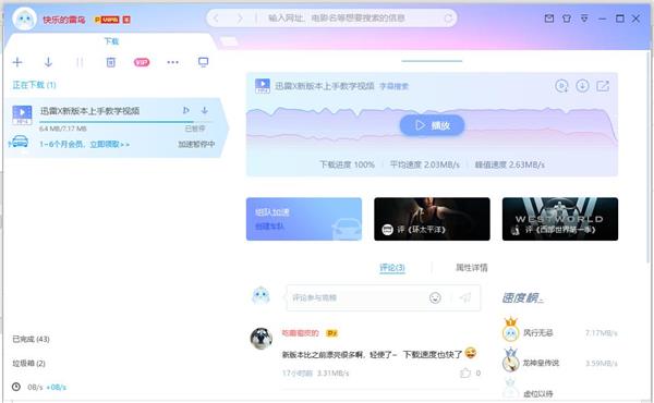 更加聚焦下载:新版迅雷X对相关下载信息进行强化,如任务的下载速度变化曲线,镜像资源的数量,以及各个文件的下载进度。延续迅雷9上实用性很高的资源评论,只要用户一选中任务,就会出现下载过该任务的用户评论。资源该不该下,广大雷友告诉你。