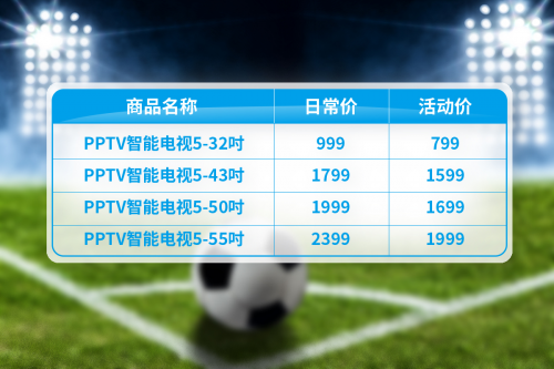 世界杯好戏连连,精彩不断,作为国内互联网电视内容之王,PPTV智能电视在世界杯淘汰赛即将来临之前,再次推出超大力度促销活动!6月28日开始,苏宁易购推出“万人空巷抢电器”活动,PPTV智能电视成为活动主力军,32吋电视仅售799!