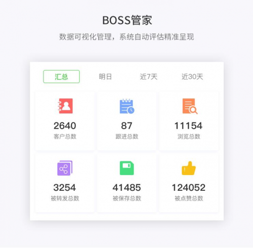 如意推人工智能名片则完美的解决了上述问题。据了解,如意推团队针对家政行业存在的种种问题,在业内率先运用先进的人工智能算法,从微信智能名片切入,为家政企业构建起资源高度整合的全流程智能营销系统。这款系统为家政从业人员提供了一个非常适合用户裂变工具,能大幅降低获客成本。同时打通客服、官网、CRM和企业动态等服务功能,为家政企业提供强大的运营管理支持。