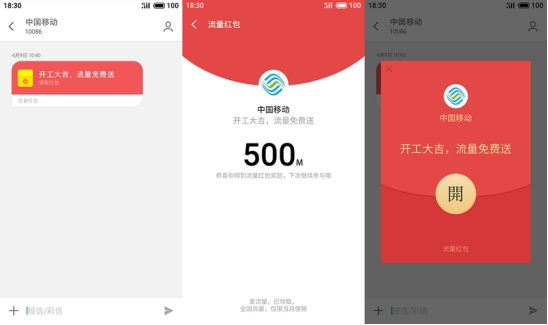 Flyme智能短信首先突破了大家普遍认知的互联网红包方式。它让红包不再局限于人见人爱的Money,也可以是更直接的几百甚至几个G的流量红包,丰富了“红包”的存在形式。