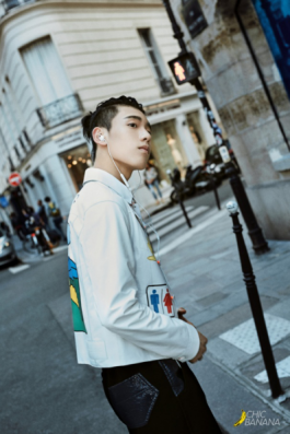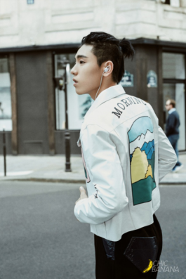 在香蕉街拍最新放出的巴黎街头“漏网”大片中,我们可以看到王子异穿上了在AngusChiang挑选的新系列时装——“早安,城之美”主题的白色夹克。Angus的衣服独有的少年感,搭配上王子异简约的造型,带着十足的酷劲。不仅如此,他扎起来头发,颓懒的同时又透露出一股清爽,着实让人眼前一亮。
