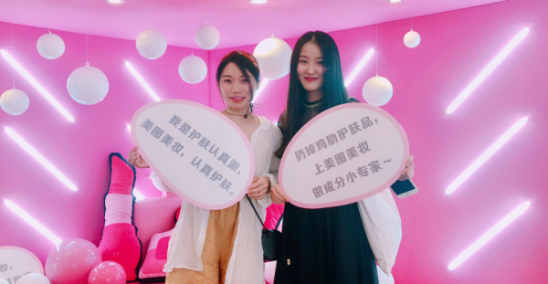 活动现场,美图美妆为会员们精心打造了粉黑双色空间,精致的装潢完美满足了用户们的少女心。用户们不仅可以在空间内拍照互动,喝茶聊天,还可以现场测肤shopping,美妆上阵迎接周末的美好生活。