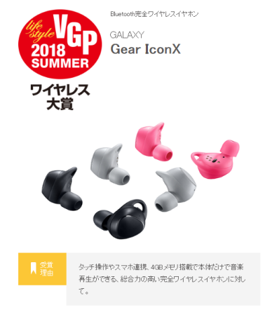 近日,日本国内最大规模且极具权威性的视听设备综合奖“VGP2018SUMMER”发布了最新一季的评奖,各种价位、各种品类细分入微,在相对亲民又能彰显品位的2万到3万日元(约合人民币1200-1800元)价格段位中,三星GearIconX2018斩获金奖,成为本季评审官十分认可并推荐的一流产品。