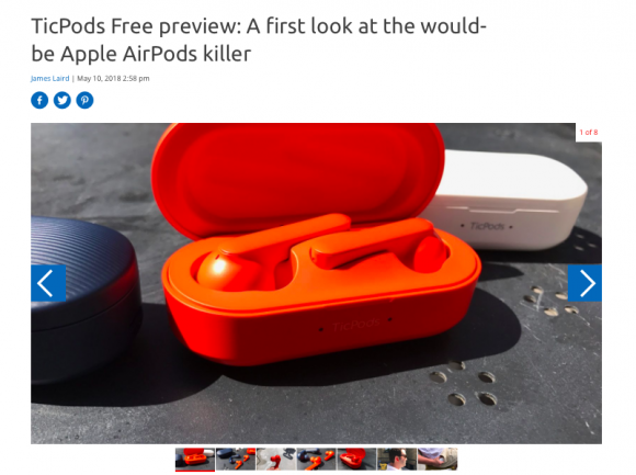 TicPods Free还获得了Business Insider、The Verge、Android Authority、TechRadar、Trusted Reviews、9to5Google等国际知名科技媒体报道。Business Insider认为“它看起来跟苹果的AirPods一模一样,但只要一部分的价钱,而且适用于所有智能手机”。Trusted Reviews称其为“AirPods杀手”。TechRadar评价说“它符合对真无线耳机所有的期待”。