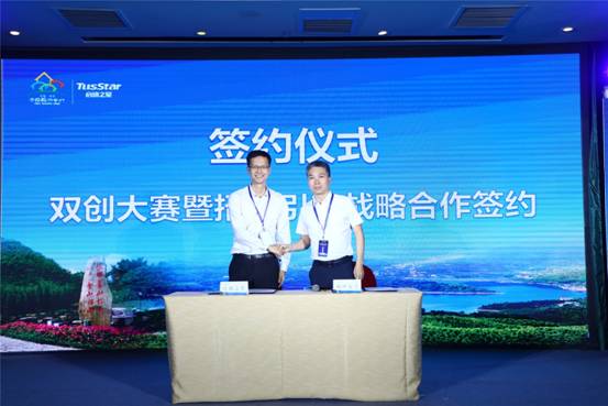 本次发布会上,中共安吉县委常委、副县长王海稳与启迪控股孵化业务总监、启迪之星总经理沈全洪签订湖州安吉双创大赛暨招才引智战略合作协议。