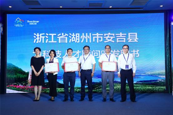 湖州市人力社保局党组成员、副局长池丽萍,湖州市科技局副局长金顺明,中共安吉县委常委、组织部长吕立,为科技人才顾问颁发聘书。