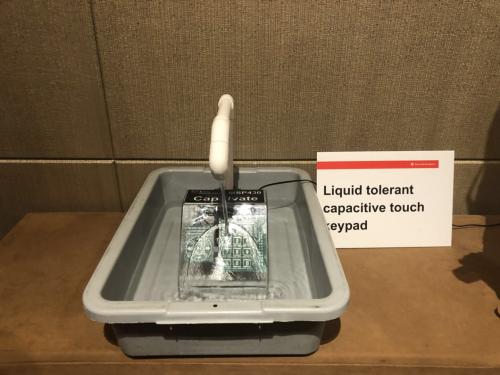 如上图所示,展示了MSP430FR2522的强大性能,这里是一个针对最坏情况的演示。在有水流冲刷的情况下,确保零误触发,用户仍然可以与设备进行交互。这意味着对于可能会暴露在有水或潮湿环境中的大小型装置、电动工具甚至蓝牙型扬声器而言,MSP430FR2522是绝佳的选择。