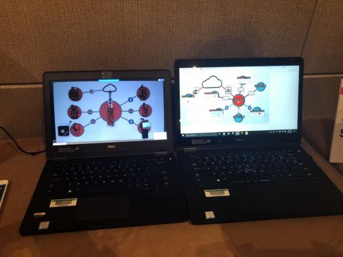 如上图所示,左边是开发板以及控制的多个模块,右边是SDK,开发板控制实现的结果可以在右侧的SDK上显示出来,比如:温度显示、电扇风速、门锁开关等。