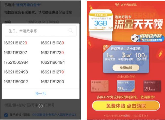 继免流量看2018世界杯视频之后,本周连尚万能卡再推重磅福利。联通166号段免费开放申请,即日起,连尚万能白金卡用户可享受0元免费选166靓号福利。