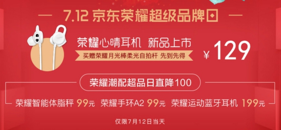 7月12日,荣耀将会联合京东商城举行“712荣耀京东超级品牌日”活动。在此次超级品牌日活动中,优惠不限于手机产品,还有智能硬件专场,购买各种潮流配件也有很大的优惠。