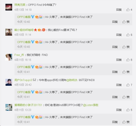 自从OPPO官方在6月宣布Find系列归来的消息后,不少老用户就已经按捺不住内心的狂喜,历经四年的等待,对于这些老用户来说Find系列的回归可谓意义非凡。很多网友也在微博上通过微博留言、私信等形式询问新品的消息,然而当官宣Find回归后,这些用户惊喜的发现OPPO客服官微在微博对留言、私信进行了逐个回复,多年的期盼终于化作现实,而OPPO客服的操作也让用户纷纷点赞。