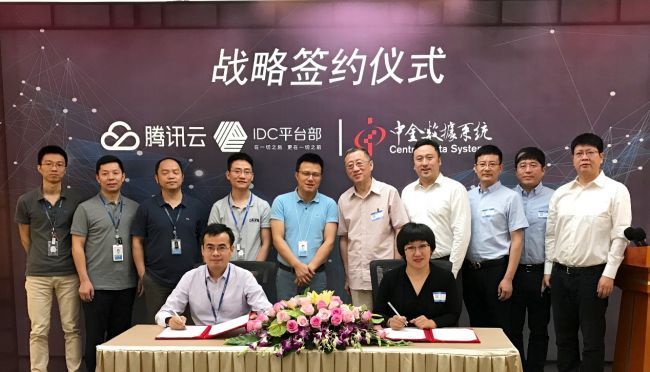 7月10日,腾讯深圳总部大厦,中金数据系统有限公司与腾讯云正式签署战略合作协议。双方约定面向全国互联网基础数据中心、云计算、运维服务以及专业解决方案等服务及相关领域展开深度合作,确保双方在规划与技术应用上保持同步,实现高匹配度的合作,以此达成优先级战略合作伙伴关系。中金数据董事长杨洁、副总裁王薇薇、中金云网总裁杨雨与腾讯IDC平台部总经理钟远河、腾讯云副总裁王慧星、腾讯IDC平台部高级总监杨晓伟、腾讯云金融业务负责人胡利明等出席并签署战略协议。