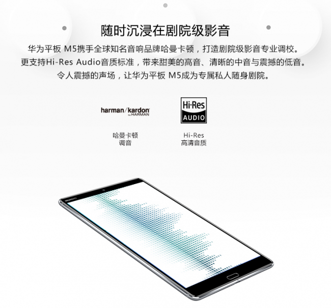 基于高品质视觉效果的基础上,华为平板 M5联合Harman Kardon对音频硬件进行了专业调校,华为自研的HUAWEI Histen技术可以带来3D环绕音效。10.8英寸与Pro版本还配备了外放效果更加震撼的声浪式四立体声扬声器,游戏玩家可以根据脚步声清晰判断敌人方位。