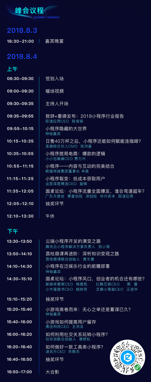 在现场你不仅可以了解2018年小程序最新行业数据报告,还能通过电商、游戏、工具、新零售、知识付费、大数据这6大行业姣姣者的干货分享,深入了解刷屏小程序背后的运营逻辑。